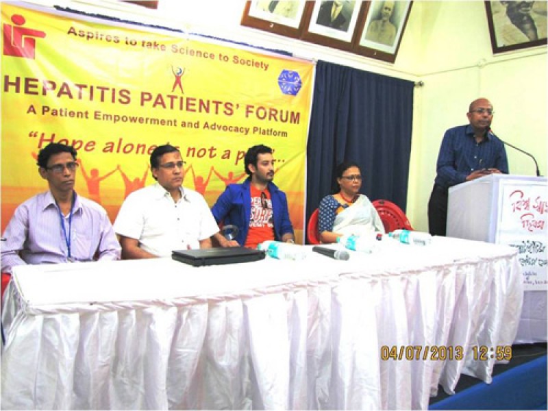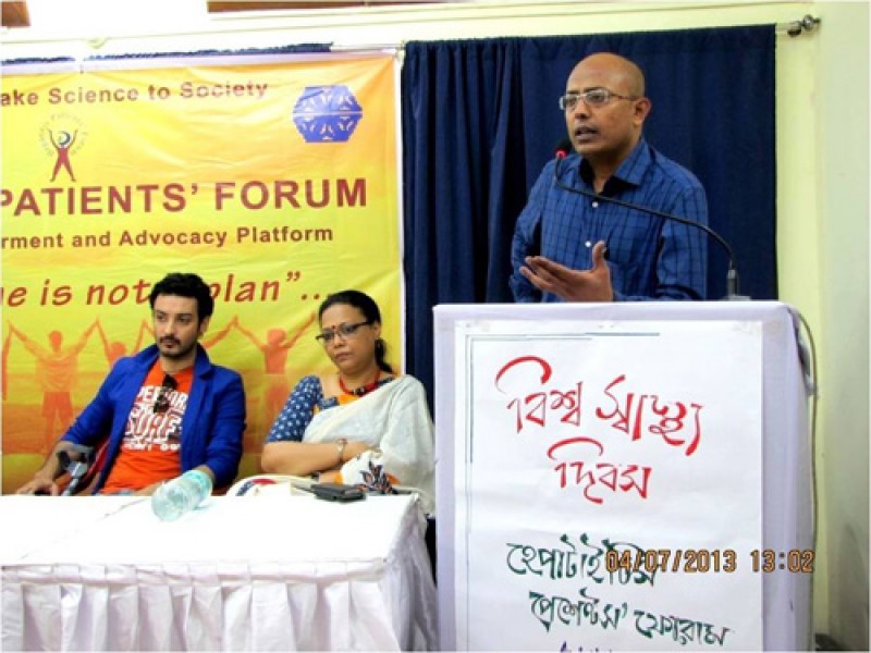 On the "World Health Day" programme persons on the stage from left J. Chakraborty (Secretary of HPF), Dr. Fuad Halim, Mr. Saheb Bhattacharya, Ms. Lopamudra Mitra and DR. Partha Sarathi Mukherjee, Project director, LFWB