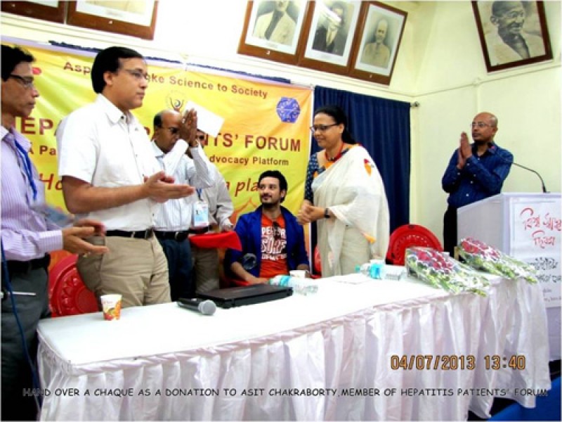 Mr. Saheb Bhattacharya handed over a cheque on behalf of HPF to Mr. Sajal Ganguly on World Health Day