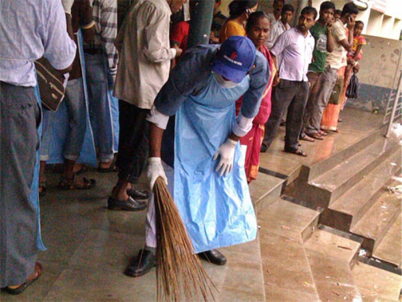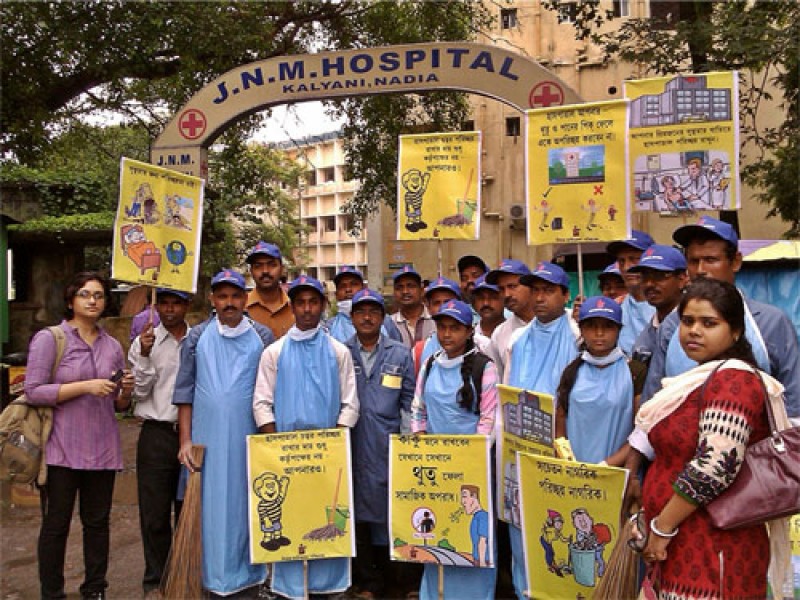 One of the R.H.C.P.(Kalyani) cleaning "Emergency" area of JNM Hospital Kalyani on the occasion of Foundation Day of LFWB on 30th, June, 2013.