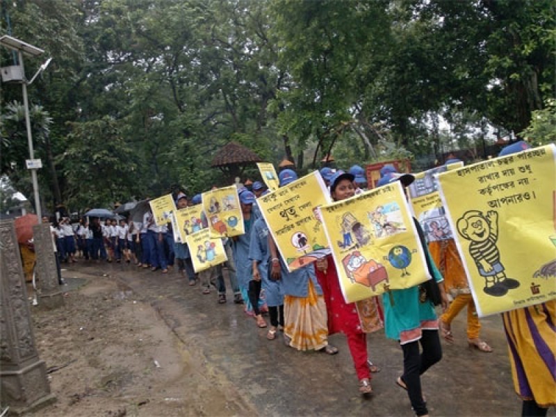 Activists in action during the awareness drive on the foundation day of LFWB at Birbhum.
