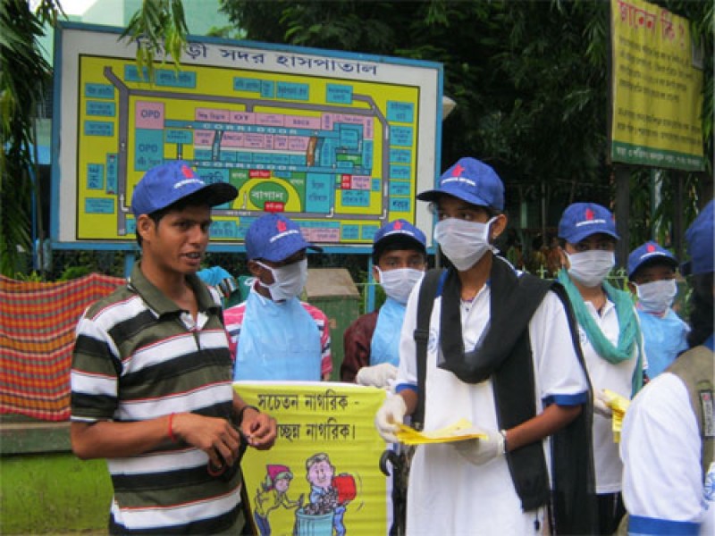 Leaflet on anti spitting being distributed to the passers-by, outside Suri Sadar Hospital at Birbhum on 30th, June, 2013.