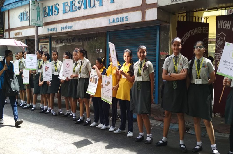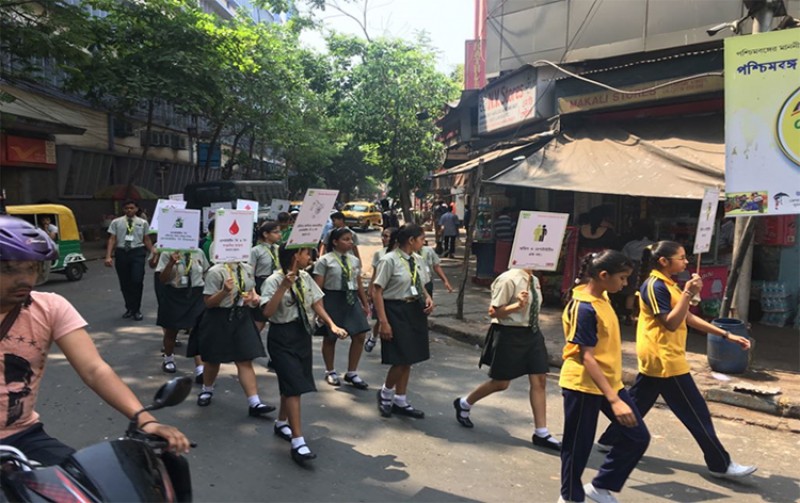 Students of the Chowringhee High School, Kolkata observing "Hepatitis Hour" on 28th April,2018.