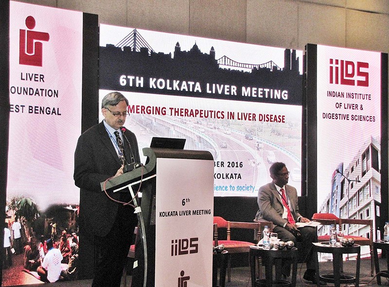 Dr. Shiv Kumar Sarin, Director ILBS, New Delhi, delivering speech at 6th Kolkata liver Meeting.