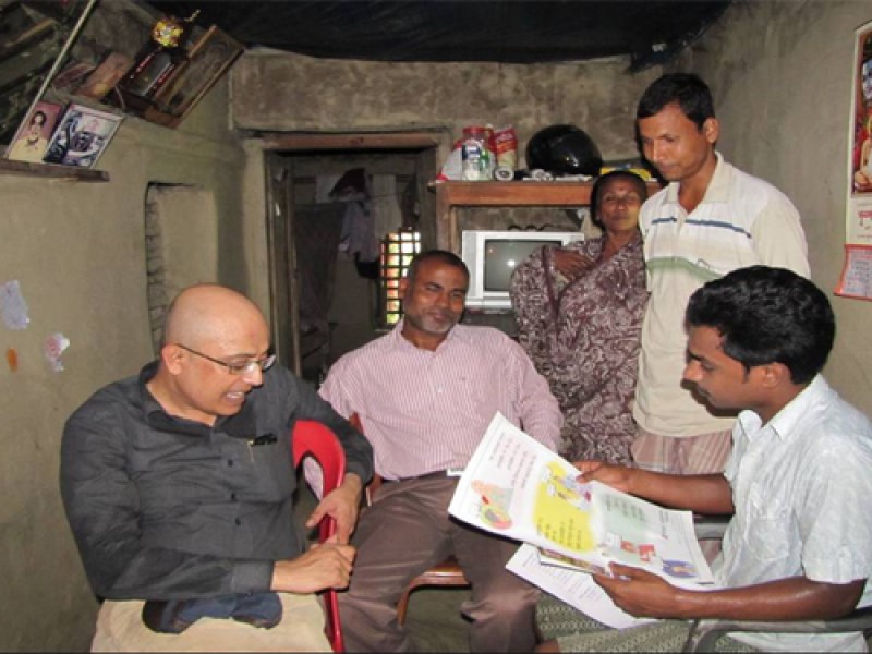 The Project Director of Liver Foundation, West Bengal, Dr. Partha Sarathi Mukherjee interacting with a Hepatitis affected and isolated family at Nandakumarpur village on 7th Aug, 2014