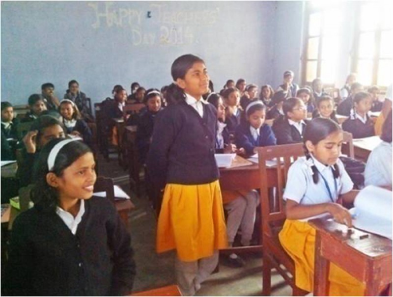 A student responding during the Structured Health Education class in Purulia Govt. Girls High School