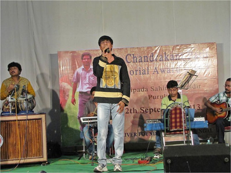 Renowned singer, Avik Mukherjee, entertaining the crowd with his melodious voice at the award ceremony in Purulia