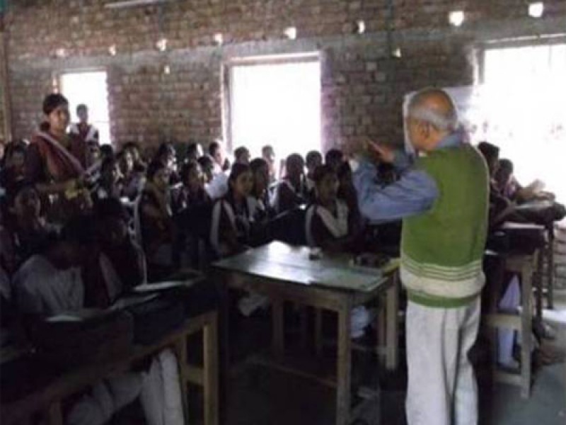 Dr C. K. Sen is delivering lecture on Liver Health & Hepatitis in an awareness program at Rautari Girl's High School, Chakdaha, Nadia