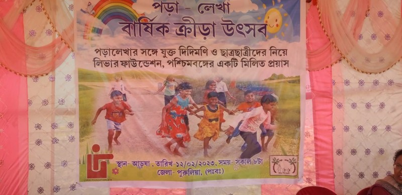 Liver Foundation, West Bengal has organized “Para Lekha Utsab” for children and SHG members of Para Lekha centres at Birbhum and Purulia on 5th and 6th May, 2023 respectively. An exhibition of children and SHG didis’ art and craft work will be displayed at the venue. Afterwards children of Para Lekha will perform on the stage. A children’s drama named “ Chasme Boddur” will be staged by a reputed theatre troop.